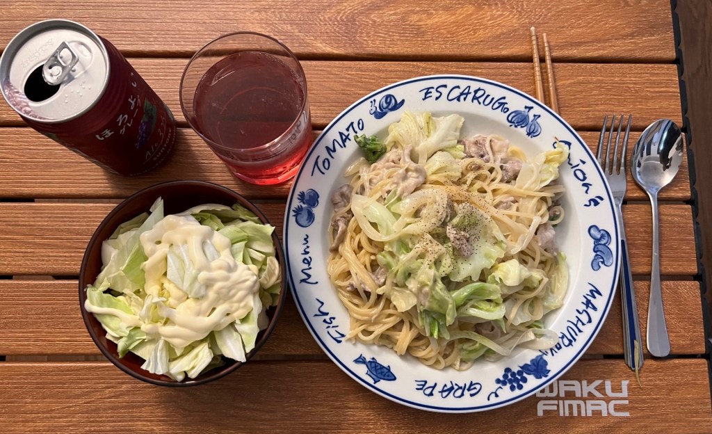 so I made a creamy pasta with cabbage, pork, and onions.