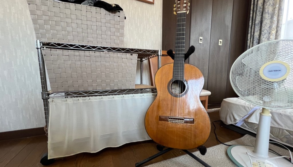 When I entered the room, my father’s guitar and the electric fan welcomed me. There were signs the futon had been aired out, and the air conditioner was on. My wife was already asleep, and I was sure she had taken care of all that.