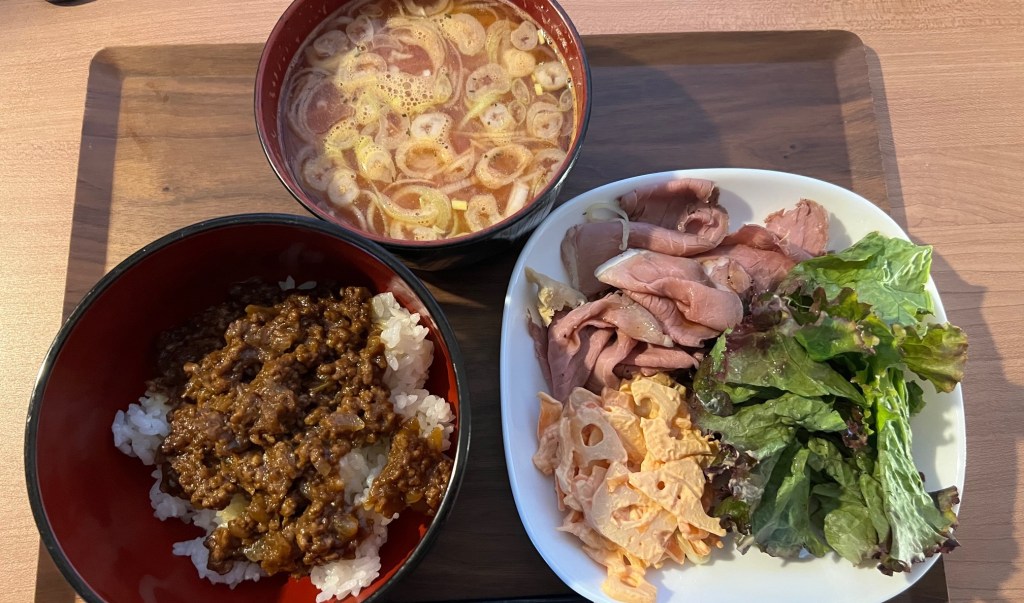 I could have gone to tennis practice again tonight, but since I already went yesterday, I decided to skip it. After work, I poured myself a glass of Scotch and thought about what to do for dinner. I could have waited for my wife to come home, but we had some leftovers in the fridge—keema curry, roast beef, and lotus root with spicy cod roe—so I made it a “clear out the fridge” kind of evening and enjoyed those.
