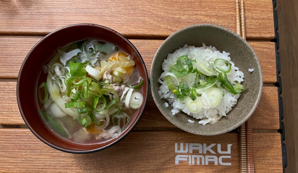 After coming home from work, I started preparing dinner while heating the bath. I decided to make my usual cabbage soup. Boiled cabbage, pork, and carrots, seasoned with soba dipping sauce, bonito stock, and a bit of grated ginger. When cooking rice in the rice cooker, I added some matsutake soup base for flavor. I topped both the rice and the cabbage soup with chopped green onions. The rice had a wonderful matsutake aroma—I added just a splash of soy sauce too. The cabbage soup had its usual gentle taste. I still think keeping it this lightly seasoned lets you truly appreciate the flavors of the ingredients.