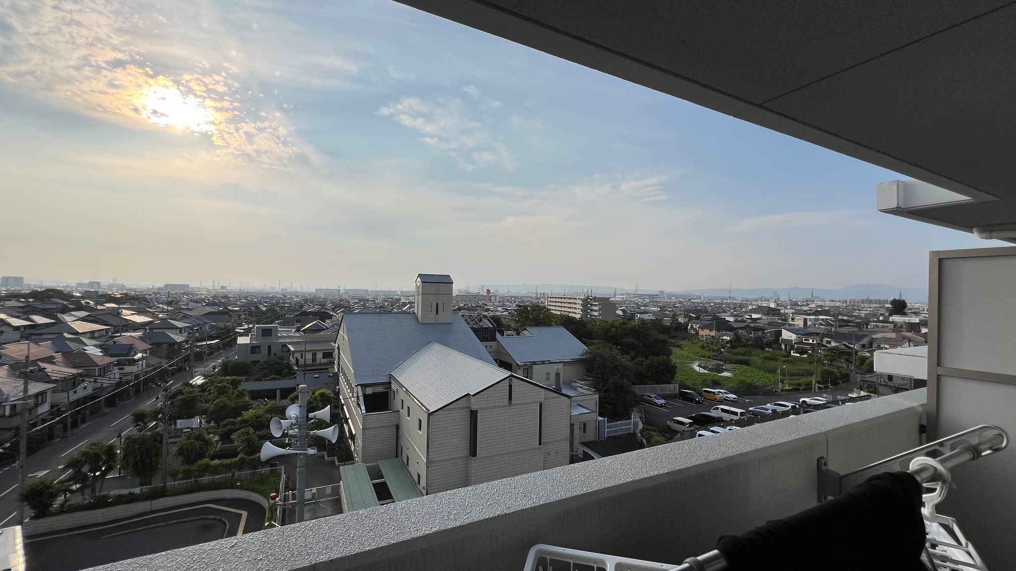 I woke up at 6 a.m. As usual, I opened the curtains and looked outside. From my east-facing window, I could see the morning sun clearly. Although there were some clouds, the sunlight was dazzling.